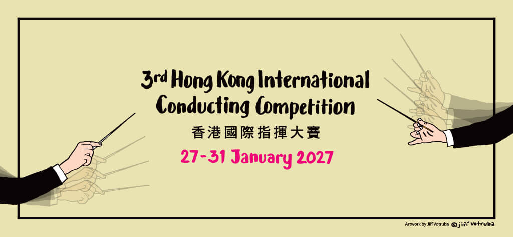 2027年1月27至31日 | 香港大會堂音樂廳香港國際指揮大賽冀為35歲以下的指揮擴闊在亞洲以至世界的網絡,蓄發更多發展機遇。評審團成員包括享譽國際的指揮和業界專業人士,期間將與參賽者分享寶貴心得和經驗。